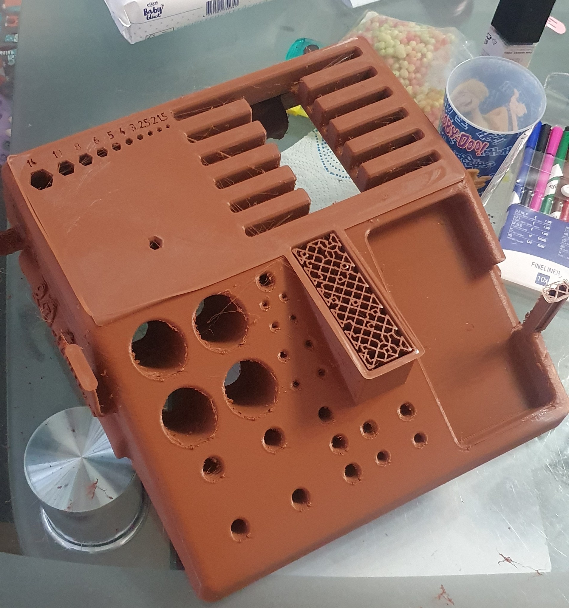 Smart 3D printing solution: This bracket transforms a glass stove cover into a sturdy splash guard with a single handle. The construction secures the plate against tipping over and saves space on the work surface. Thanks to mounting with high-performance adhesive tape, no drilling was necessary. The component was manufactured in one piece.